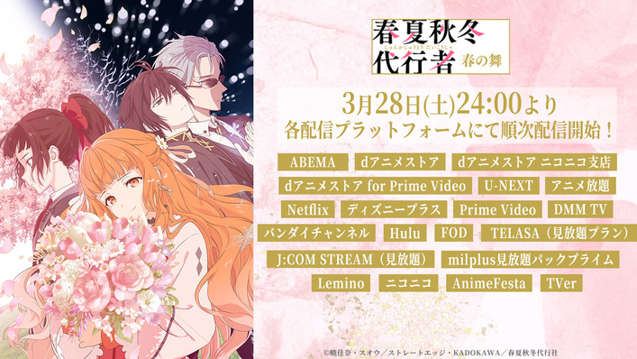 アニメ「春夏秋冬代行者 春の舞」の配信は、3月28日(土) 24:00より各配信プラットフォームにて順次配信開始!