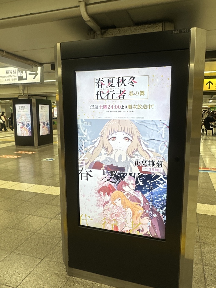 本日よりTVアニメ「春夏秋冬代行者 春の舞」のサイネージ広告が、都内JR池袋中央改札内にて放映されます。